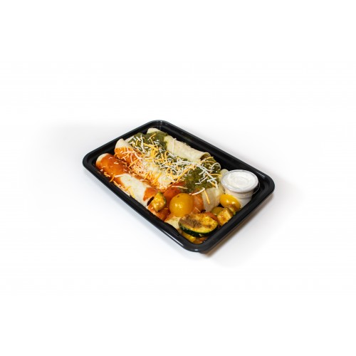 Grilled sirloin steak enchiladas baked with gluten free tortillas and house-made enchilada sauce. Served with black bean & elote corn.