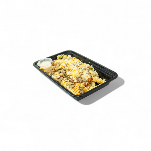 90/10 Ground beef on rotini pasta with our house made romesco sauce, arugula, cheddar and sour cream.