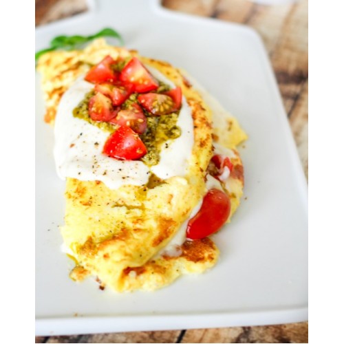 Eggs, cherry tomatoes, mozzarella and fresh basil. Keto friendly and gluten free.