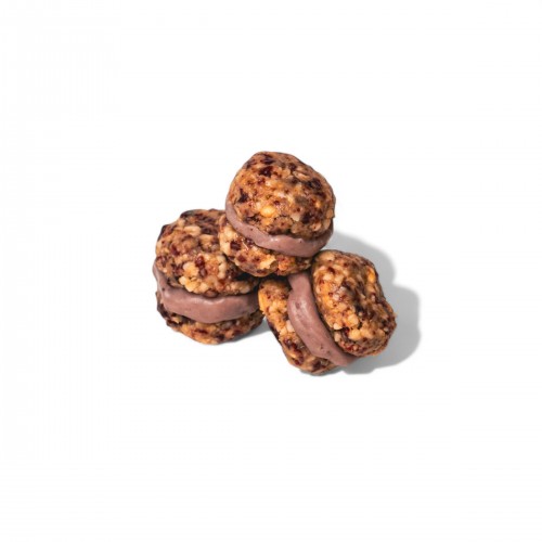 Peanuts, almonds, peanut butter, craisins, berry compote and white milk chocolate